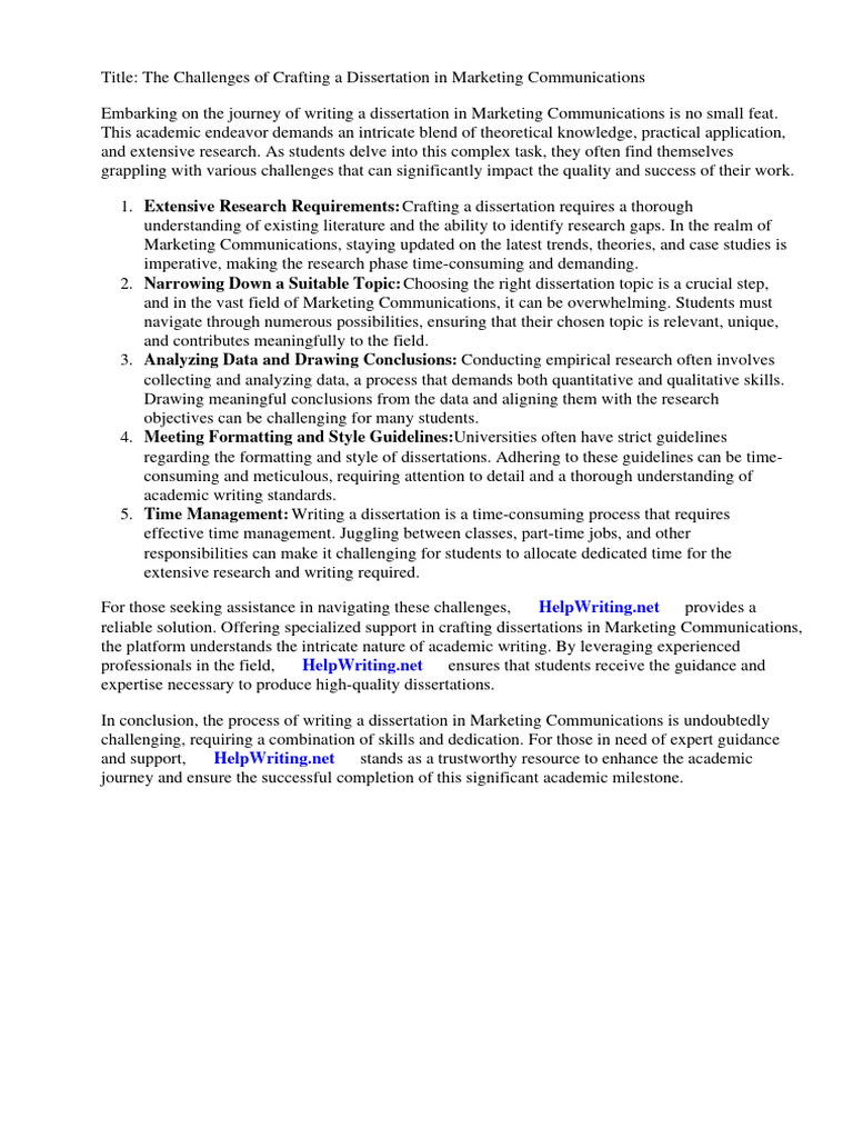 Embarking on the journey of writing a dissertation in Marketing Communications is no small feat.