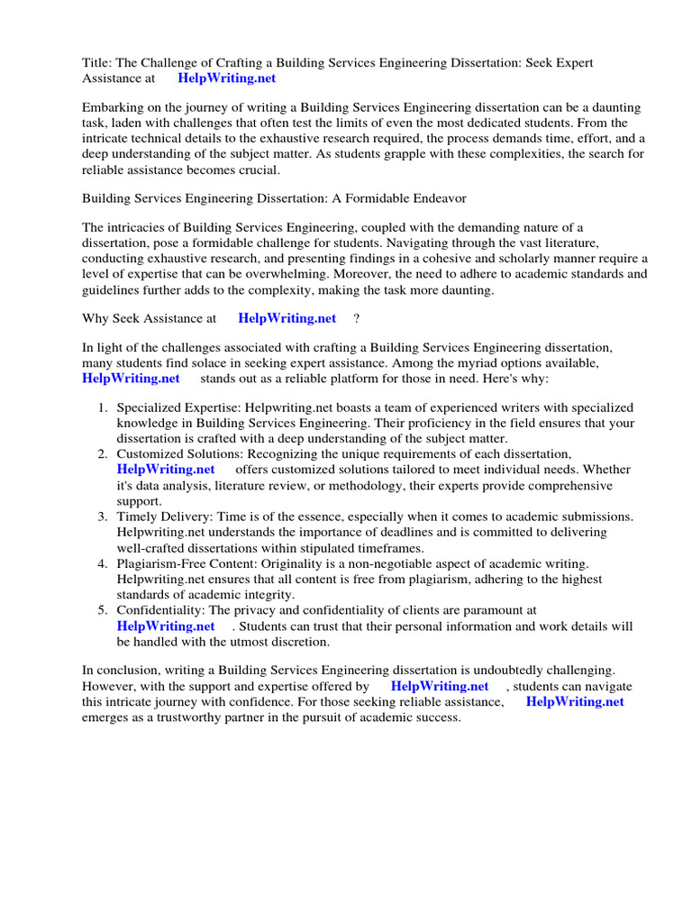 In light of the challenges associated with crafting a Building Services Engineering dissertation,