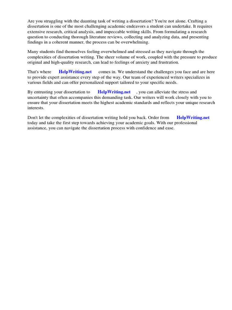 Don't let the complexities of dissertation writing hold you back. Order from ⇒ HelpWriting.net ⇔