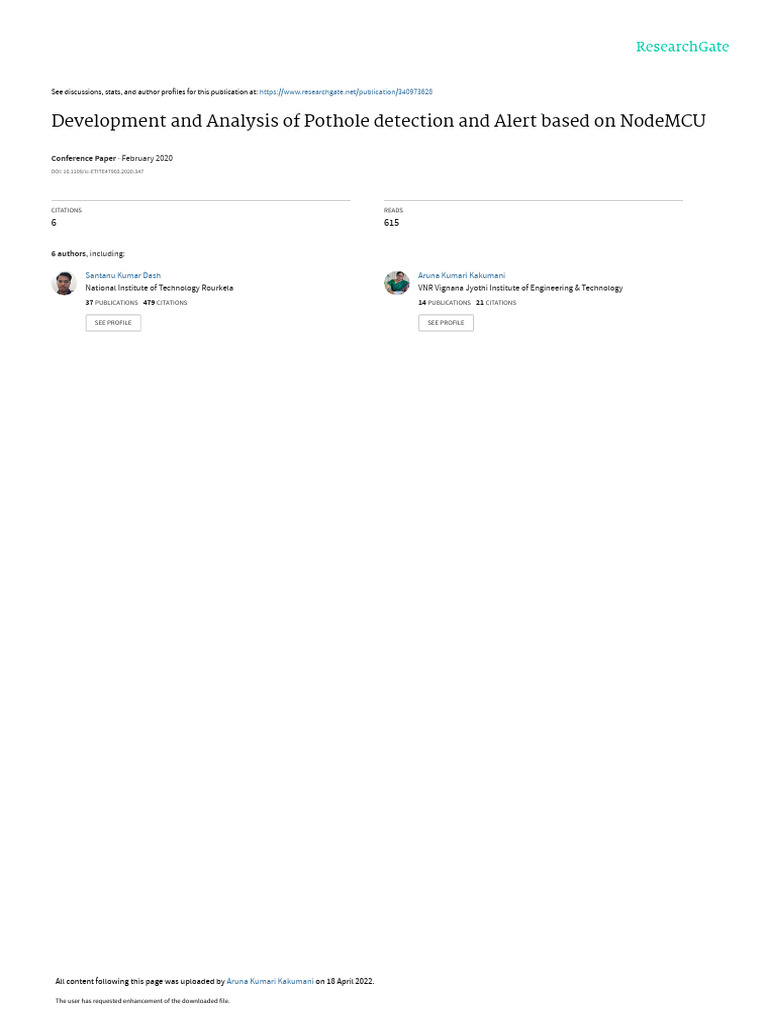 Node MCU” 2018 International Conference on Computer V “Real Time Pothole Detection and Road Monitoring System”