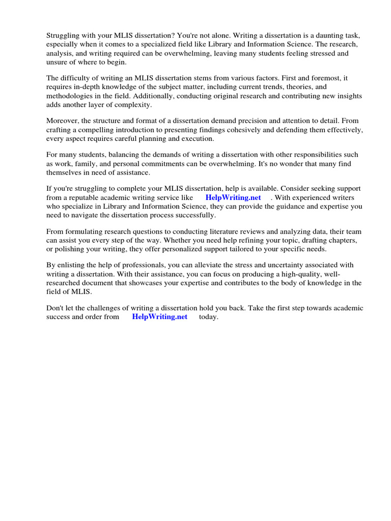If you're struggling to complete your MLIS dissertation, help is available. Consider seeking support