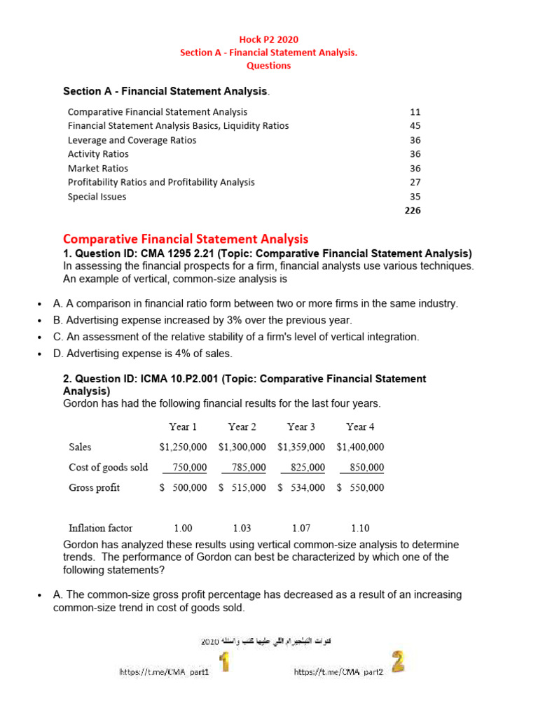 15. Question ID: ICMA 1603.P2.044 (Topic: Financial Statement Analysis Basics,