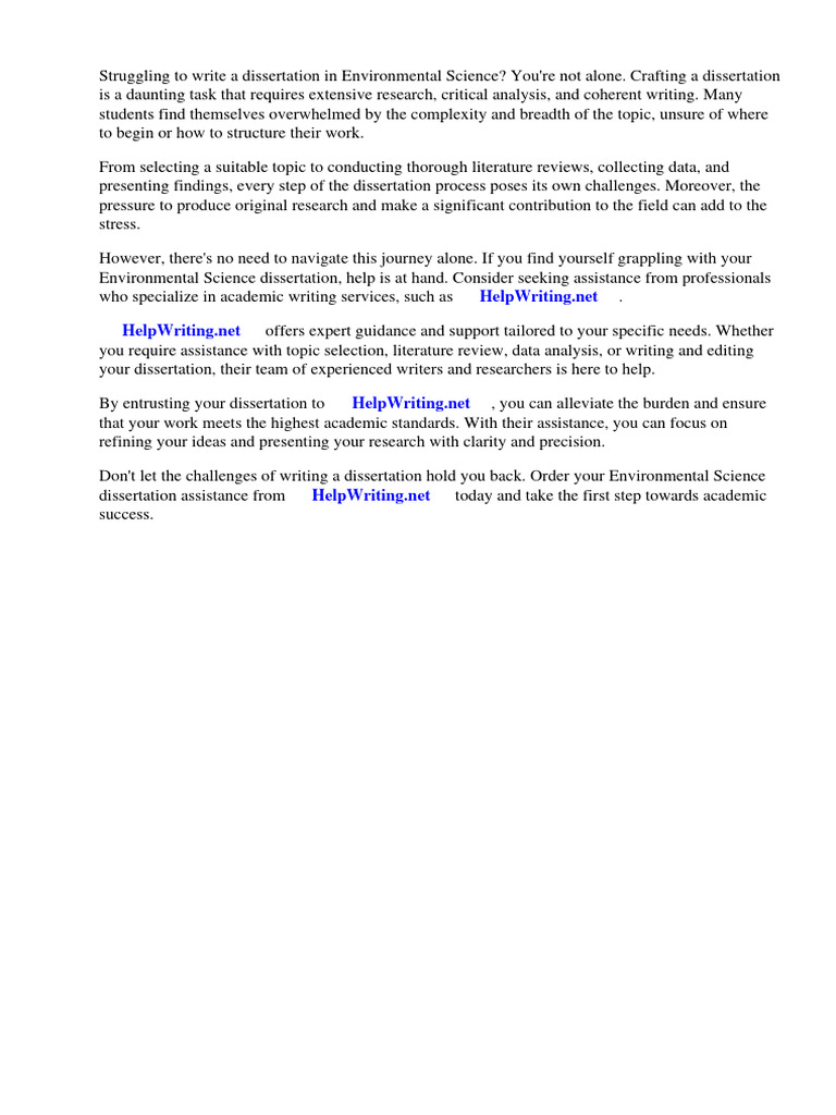 Environmental Science dissertation, help is at hand. Consider seeking assistance from professionals