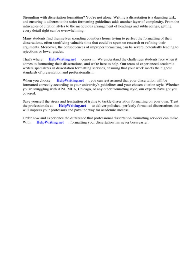comes to formatting their dissertations, and we're here to help. Our team of experienced academic