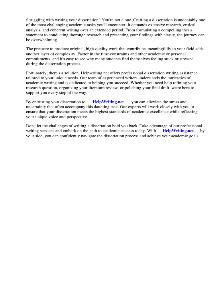 Fortunately, there's a solution. Helpwriting.net offers professional dissertation writing assistance