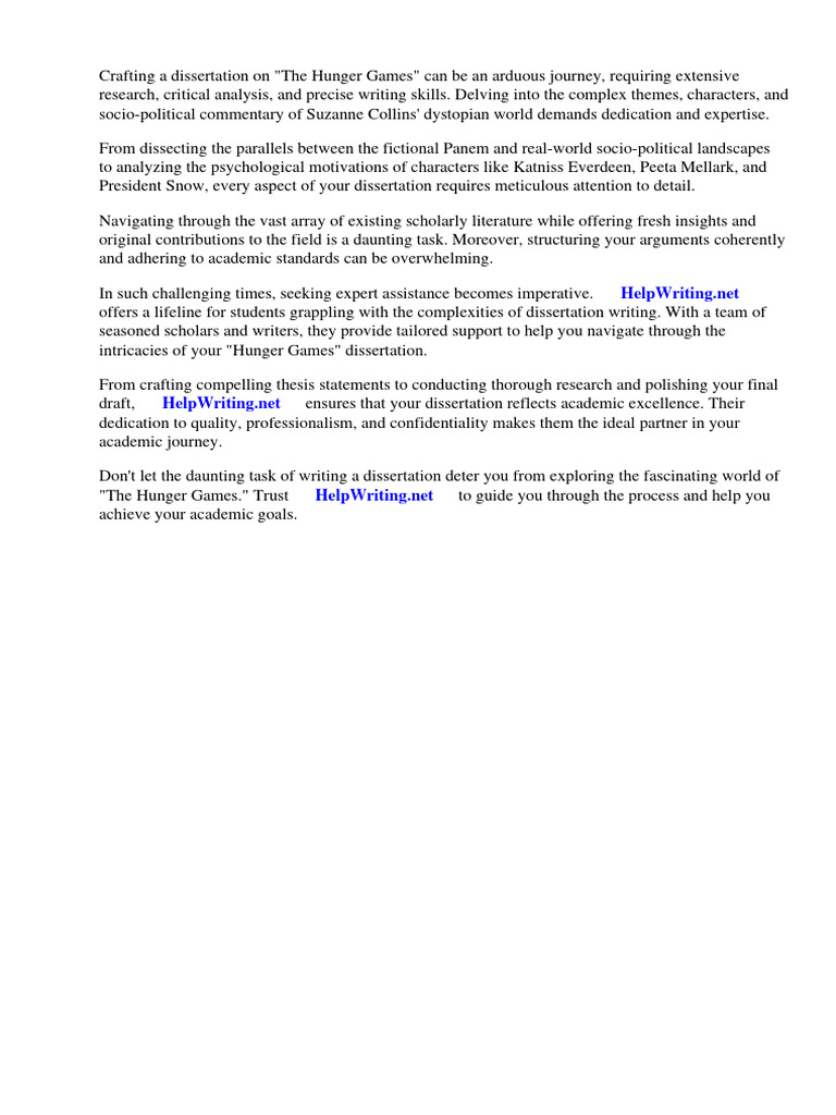 Crafting a dissertation on "The Hunger Games" can be an arduous journey, requiring extensive