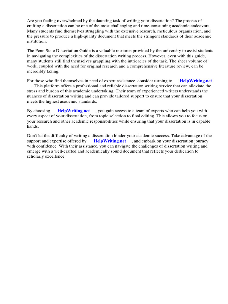 The Penn State Dissertation Guide is a valuable resource provided by the university to assist students