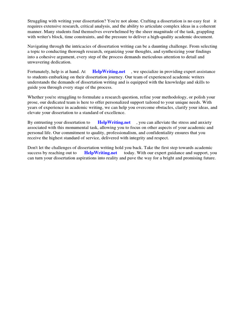 By entrusting your dissertation to ⇒ HelpWriting.net ⇔, you can alleviate the stress and anxiety