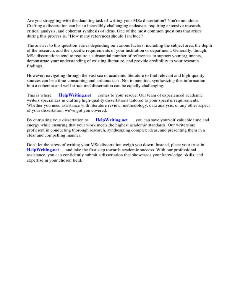 MSc dissertations tend to require a substantial number of references to support your arguments,