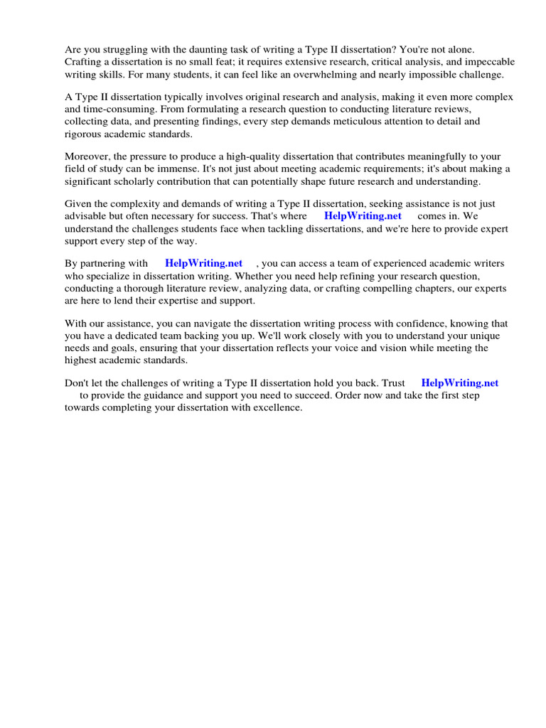 Don't let the challenges of writing a Type II dissertation hold you back. Trust ⇒ HelpWriting.net