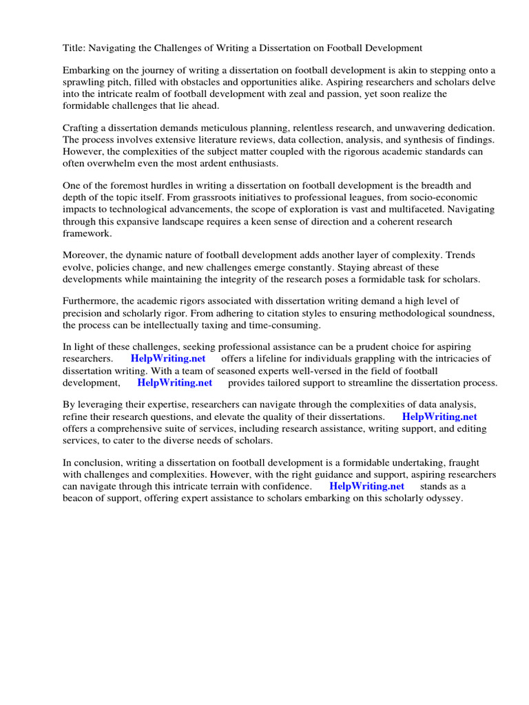 One of the foremost hurdles in writing a dissertation on football development is the breadth and