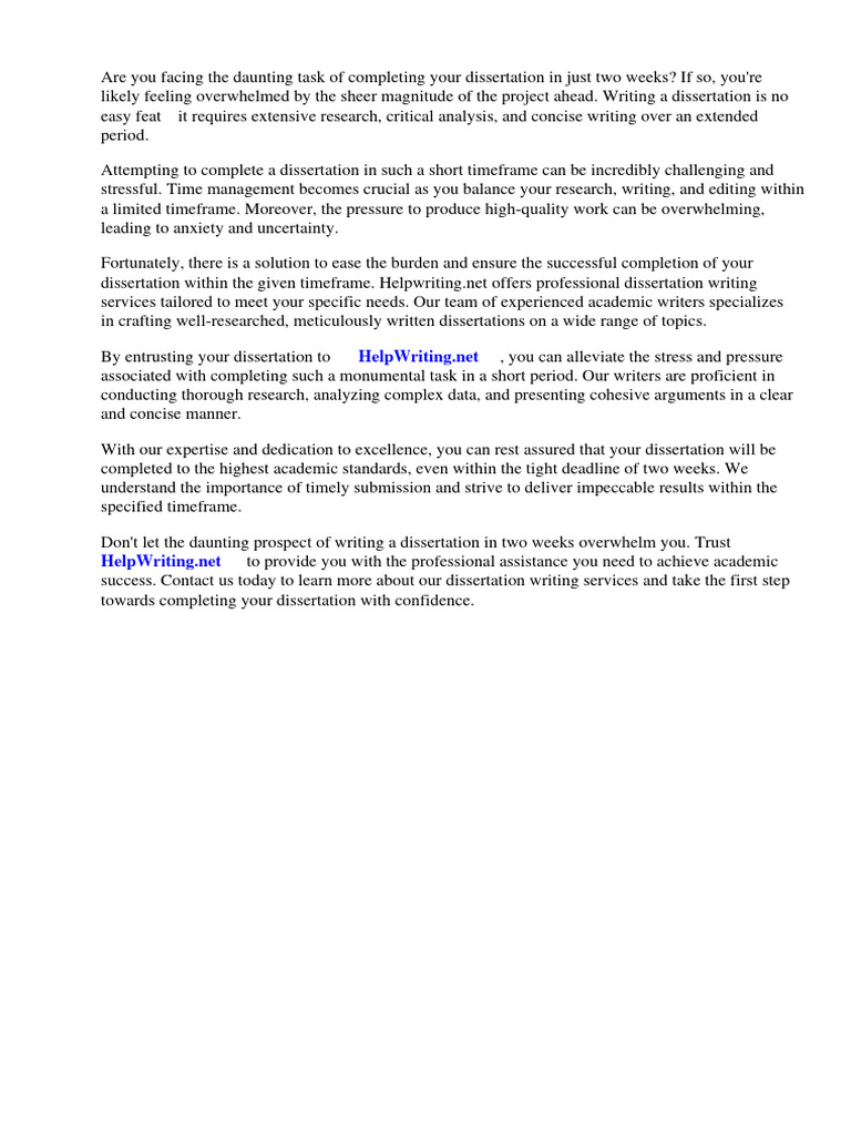 dissertation within the given timeframe. Helpwriting.net offers professional dissertation writing
