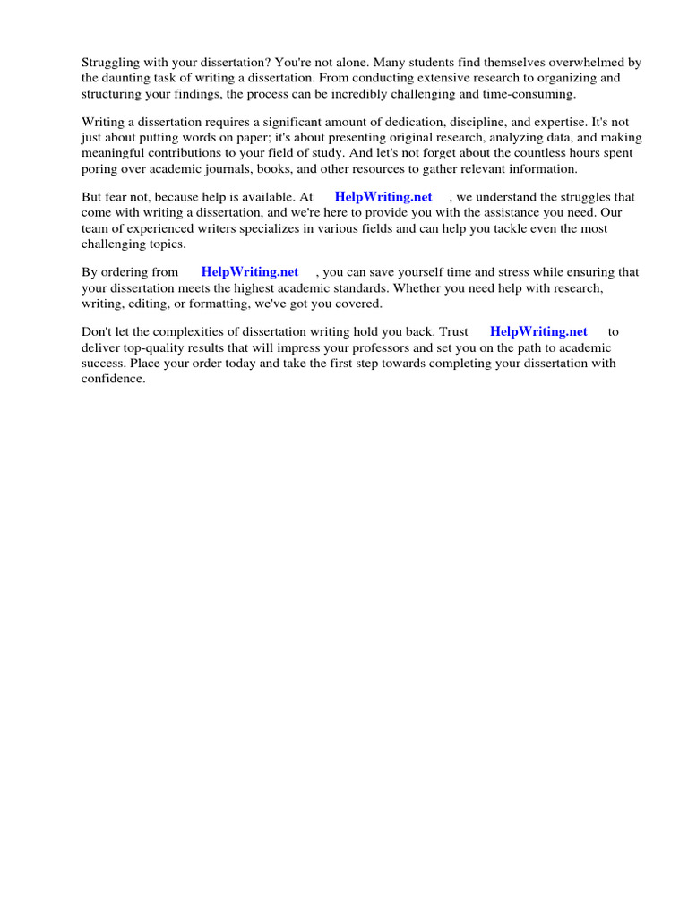 Don't let the complexities of dissertation writing hold you back. Trust ⇒ HelpWriting.net ⇔ to