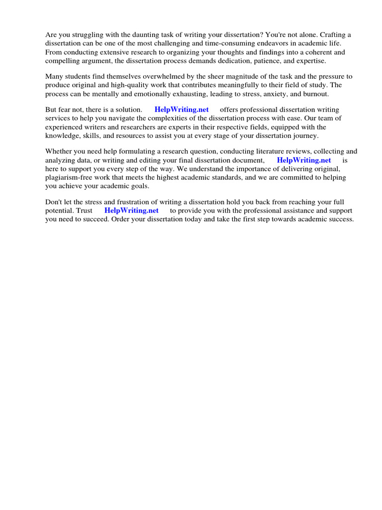 But fear not, there is a solution. ⇒ HelpWriting.net ⇔ offers professional dissertation writing