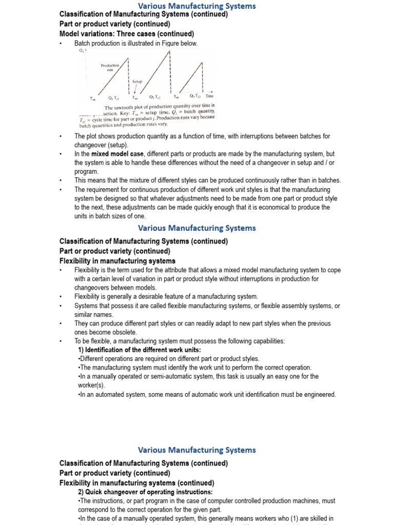 • In modern manufacturing engineering practice, even single model manufacturing systems are being