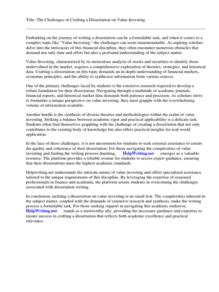 Title: The Challenges of Crafting a Dissertation on Value Investing