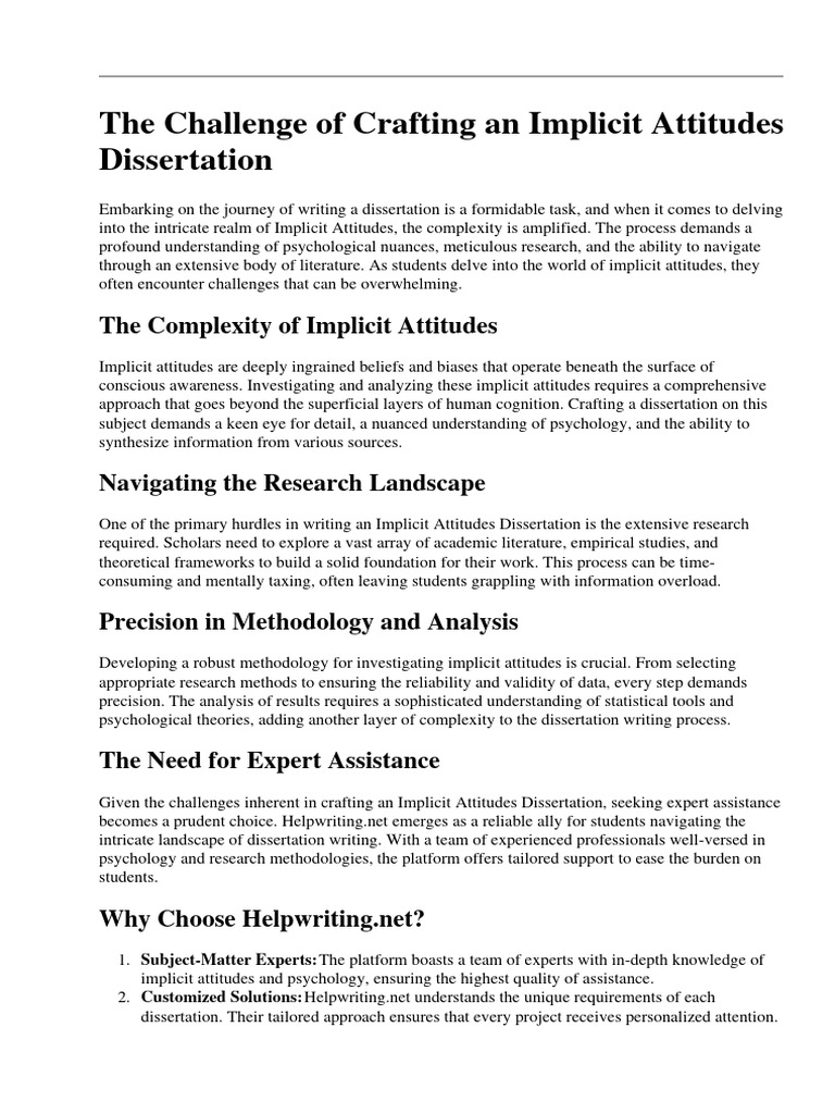 Given the challenges inherent in crafting an Implicit Attitudes Dissertation, seeking expert assistance