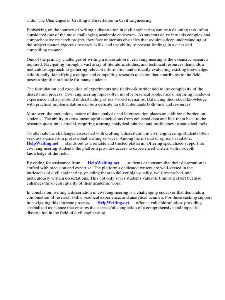 To alleviate the challenges associated with crafting a dissertation in civil engineering, students often
