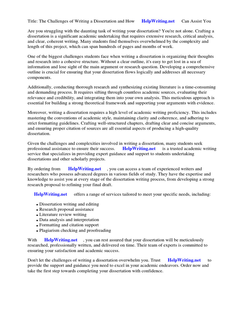 Title: The Challenges of Writing a Dissertation and How ⇒ HelpWriting.