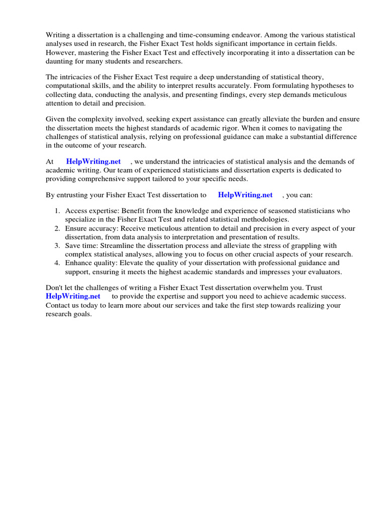 By entrusting your Fisher Exact Test dissertation to ⇒ HelpWriting.net ⇔, you can: