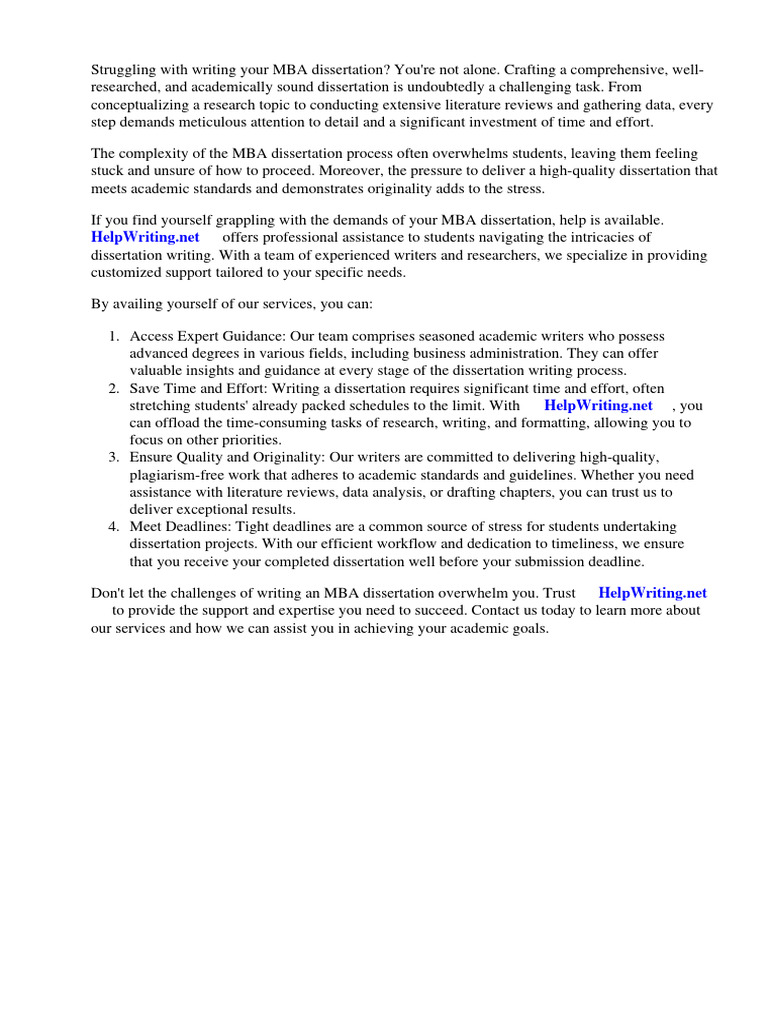 Don't let the challenges of writing an MBA dissertation overwhelm you. Trust ⇒ HelpWriting.net