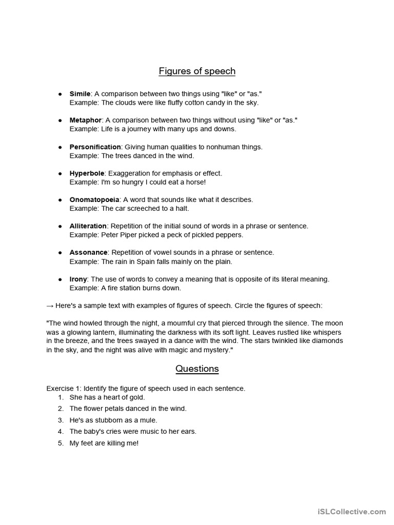 → Here's a sample text with examples of figures of speech. Circle the figures of speech: