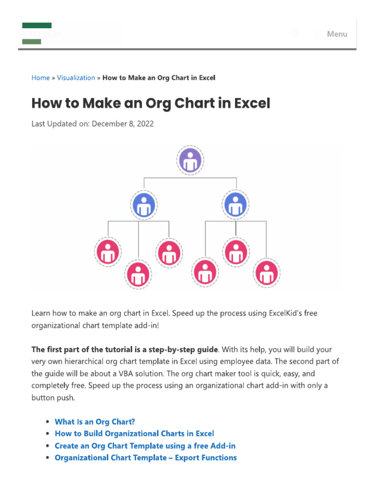 Learn how to make an org chart in Excel. Speed up the process using ExcelKid's free