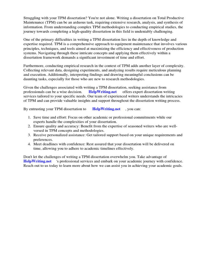 By entrusting your TPM dissertation to ⇒ HelpWriting.net ⇔, you can: