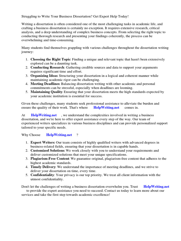 Don't let the challenges of writing a business dissertation overwhelm you. Trust ⇒ HelpWriting.net