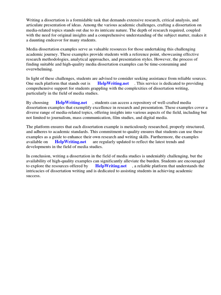 Media dissertation examples serve as valuable resources for those undertaking this challenging