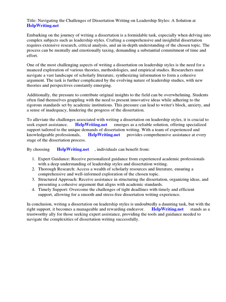 Title: Navigating the Challenges of Dissertation Writing on Leadership Styles: A Solution at ⇒