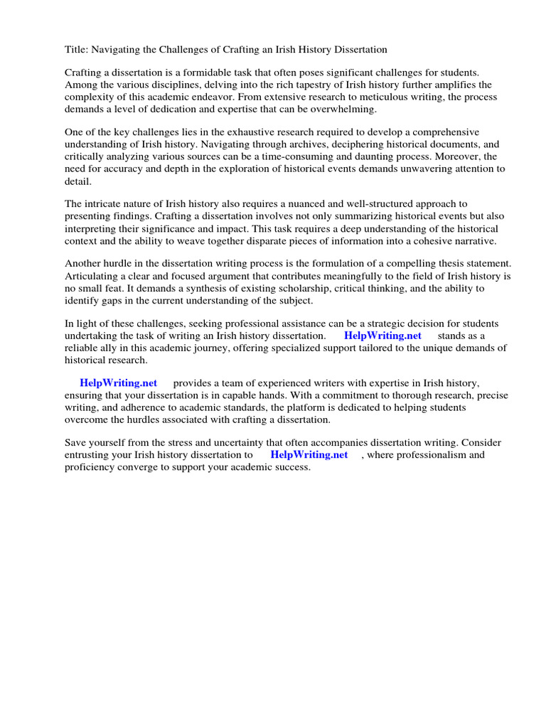 undertaking the task of writing an Irish history dissertation. ⇒ HelpWriting.net ⇔ stands as a