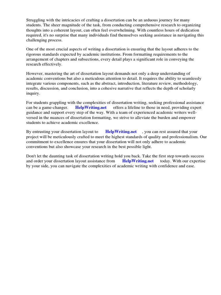 and order your dissertation layout assistance from ⇒ HelpWriting.net ⇔ today. With our expertise