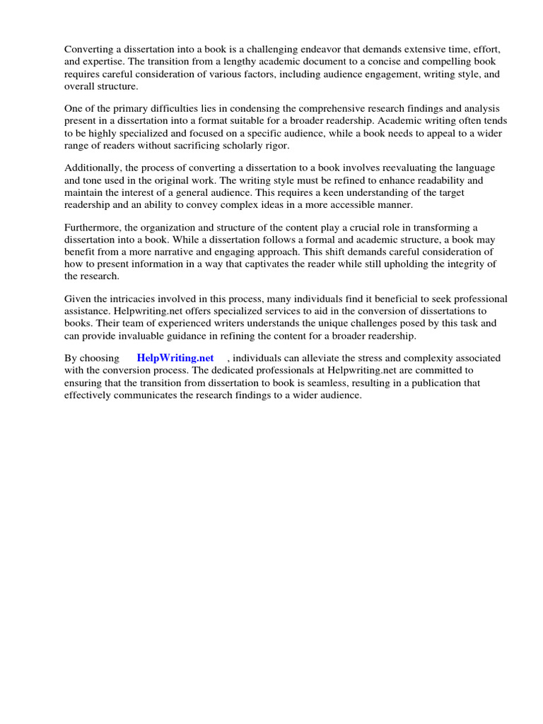 assistance. Helpwriting.net offers specialized services to aid in the conversion of dissertations to