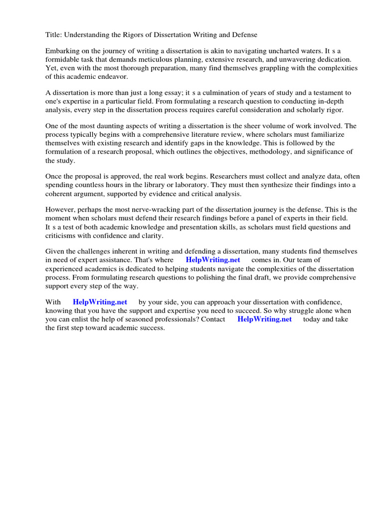 Title: Understanding the Rigors of Dissertation Writing and Defense