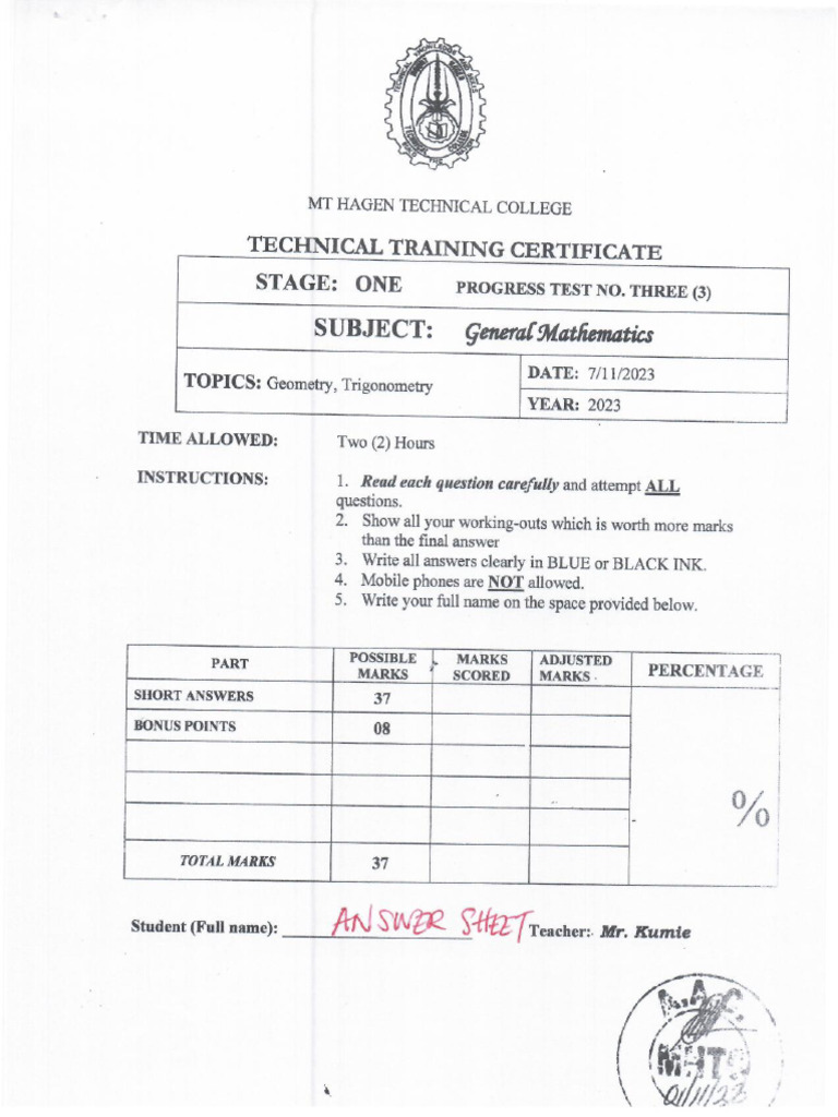 =72-Is9q_aTre1 MATHEMATICS PROGRESSIVE TEST NO3 2023