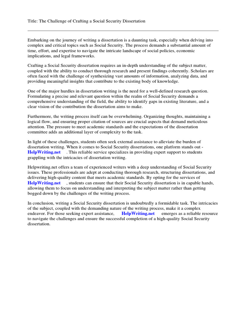 Crafting a Social Security dissertation requires an in-depth understanding of the subject matter,