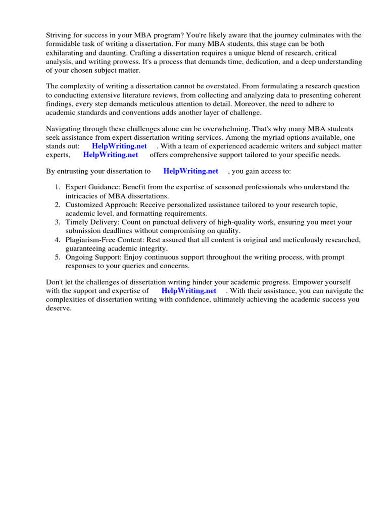 just as important as writing the dissertation Dissertationhelp.com is a get a MBA dissertation