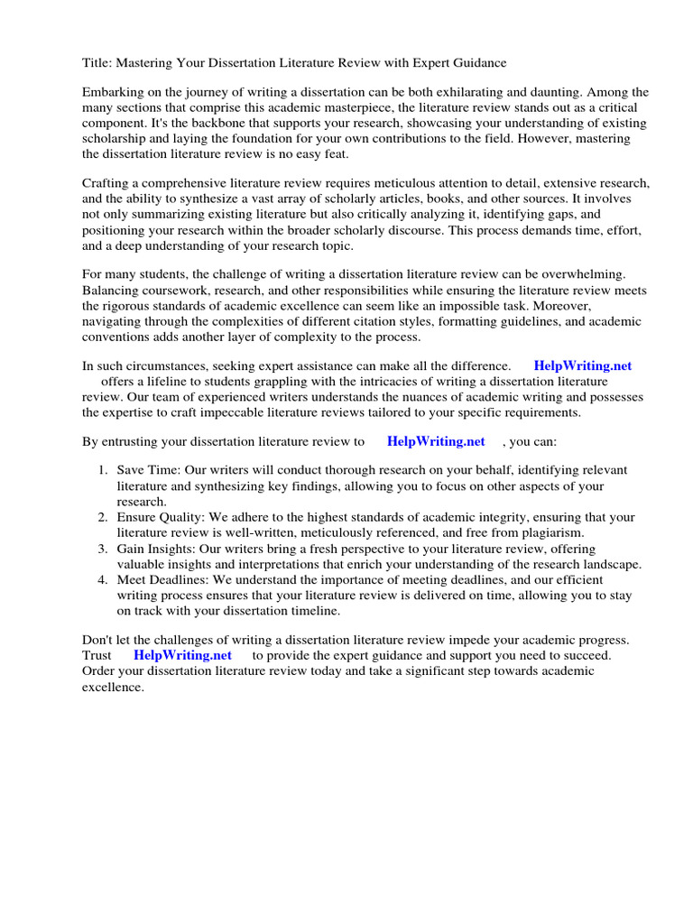 Title: Mastering Your Dissertation Literature Review with Expert Guidance