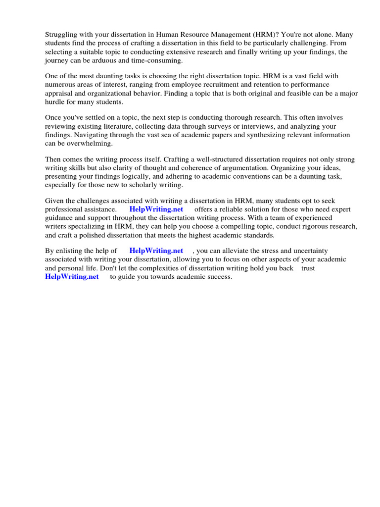 Given the challenges associated with writing a dissertation in HRM, many students opt to seek