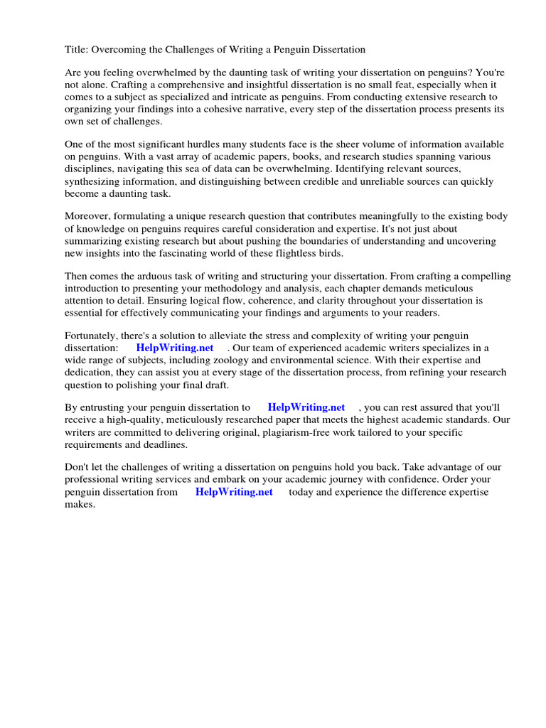 Title: Overcoming the Challenges of Writing a Penguin Dissertation