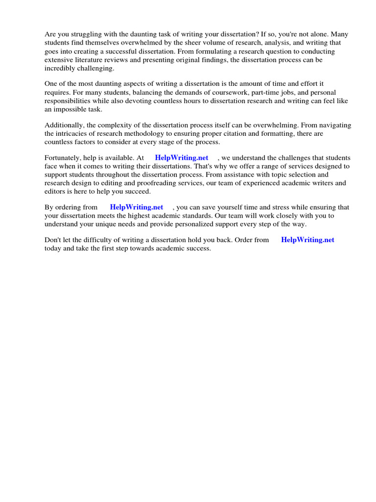 Don't let the difficulty of writing a dissertation hold you back. Order from ⇒ HelpWriting.net ⇔
