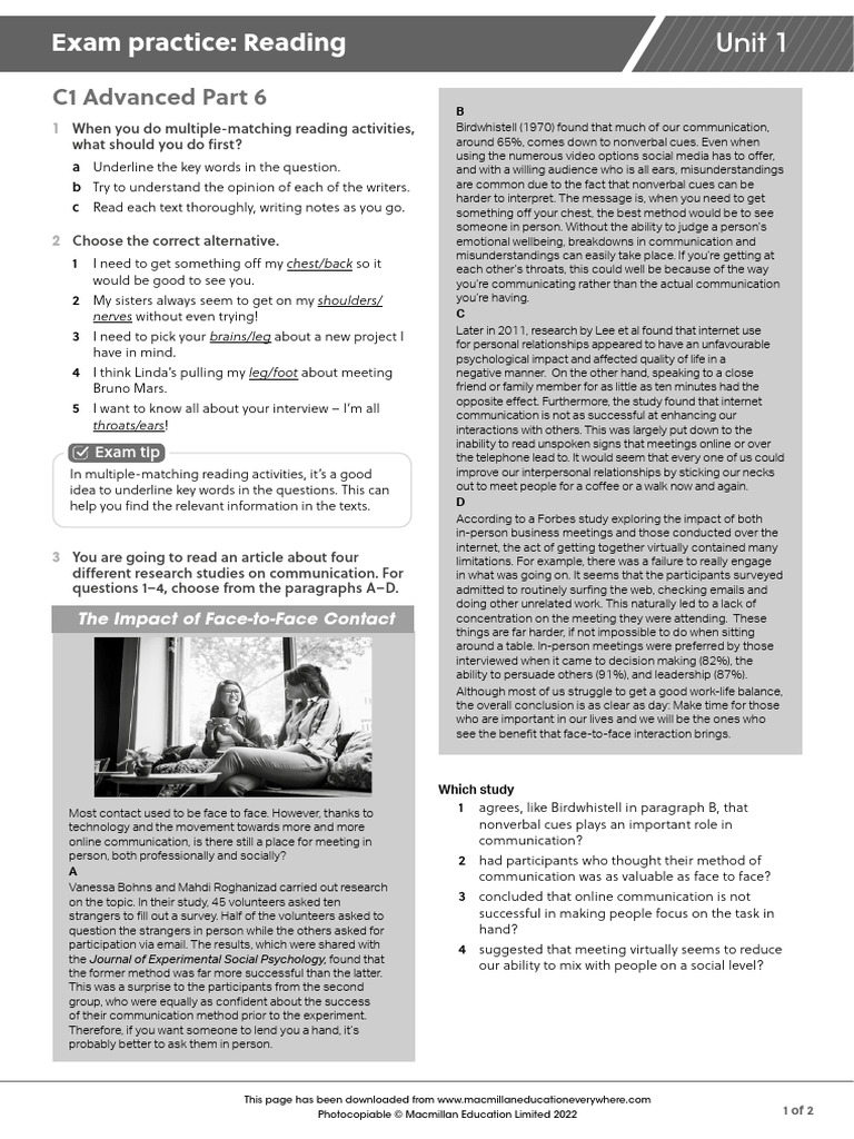 Exam practice: Reading Unit 1