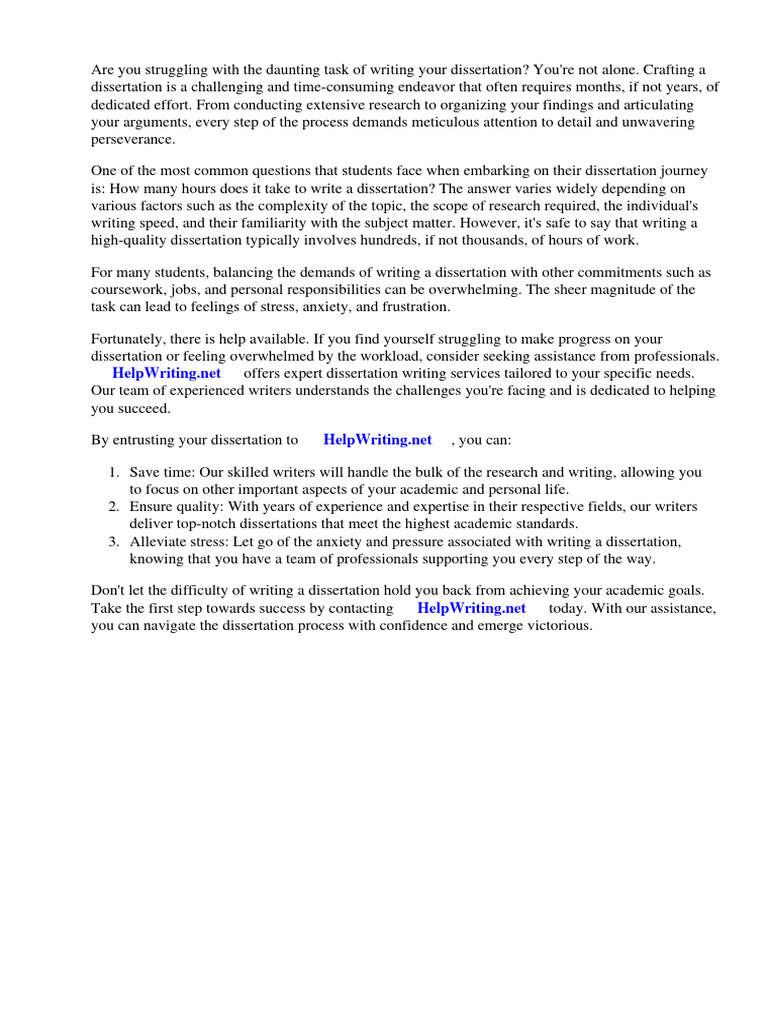 high-quality dissertation typically involves hundreds, if not thousands, of hours of work.