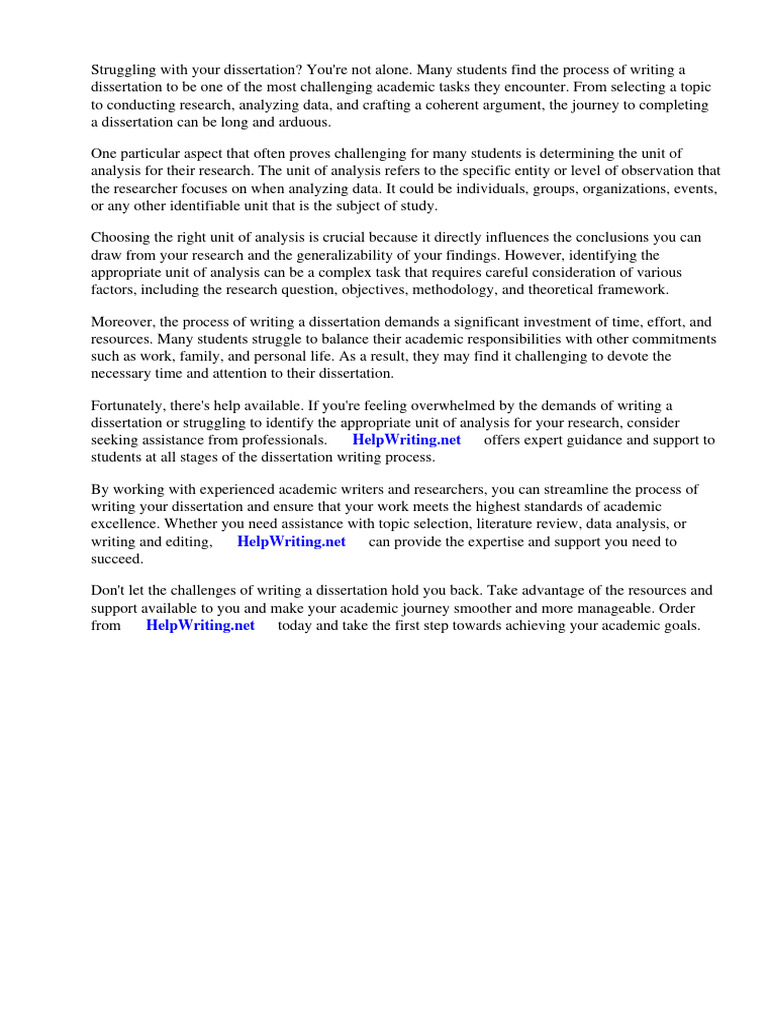 dissertation or struggling to identify the appropriate unit of analysis for your research, consider
