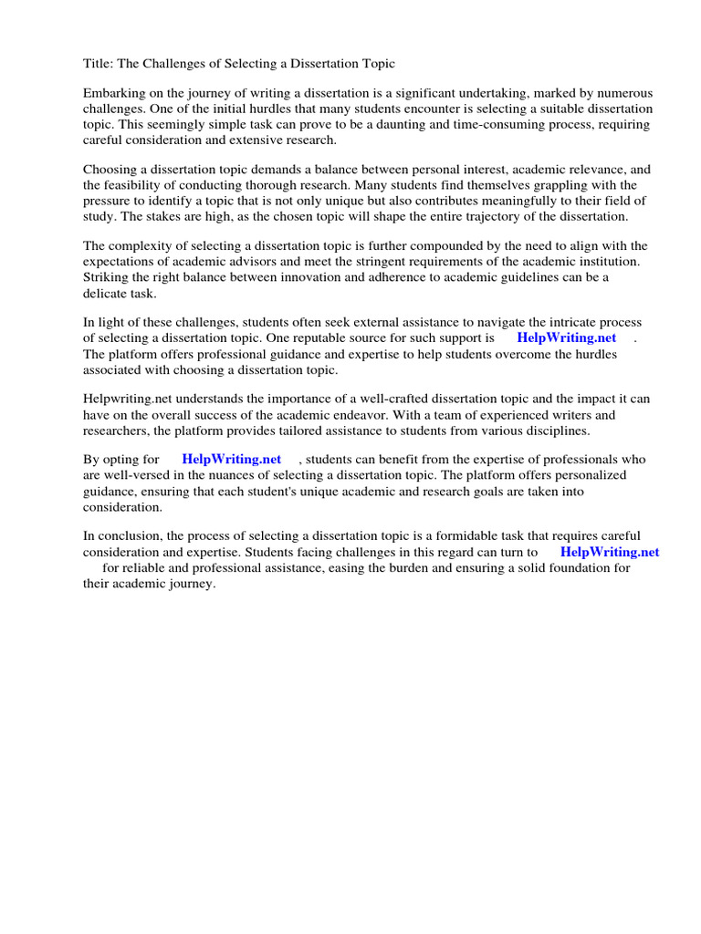 challenges. One of the initial hurdles that many students encounter is selecting a suitable dissertation