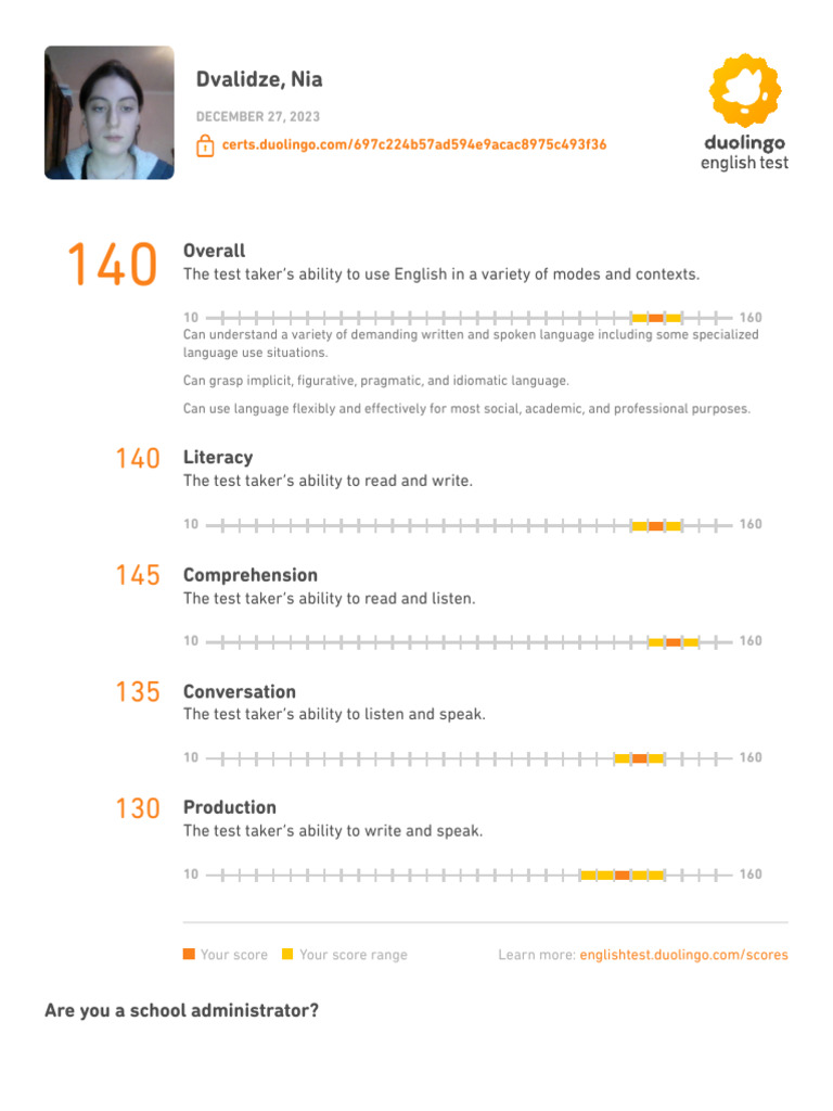 Your score Your score range Learn more: englishtest.duolingo.com/scores