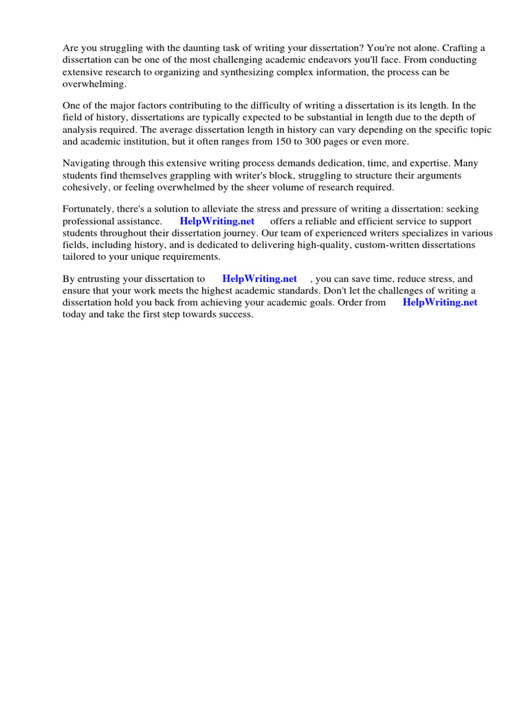 analysis required. The average dissertation length in history can vary depending on the specific topic