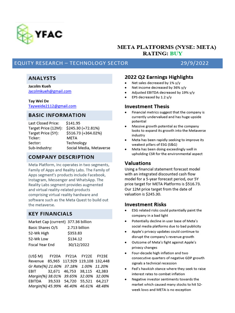 Based on our analysis, we gave Meta a buy rating as we believe that the company is currently undervalued based on