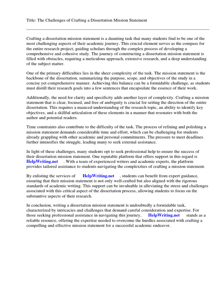 Crafting a dissertation mission statement is a daunting task that many students find to be one of the